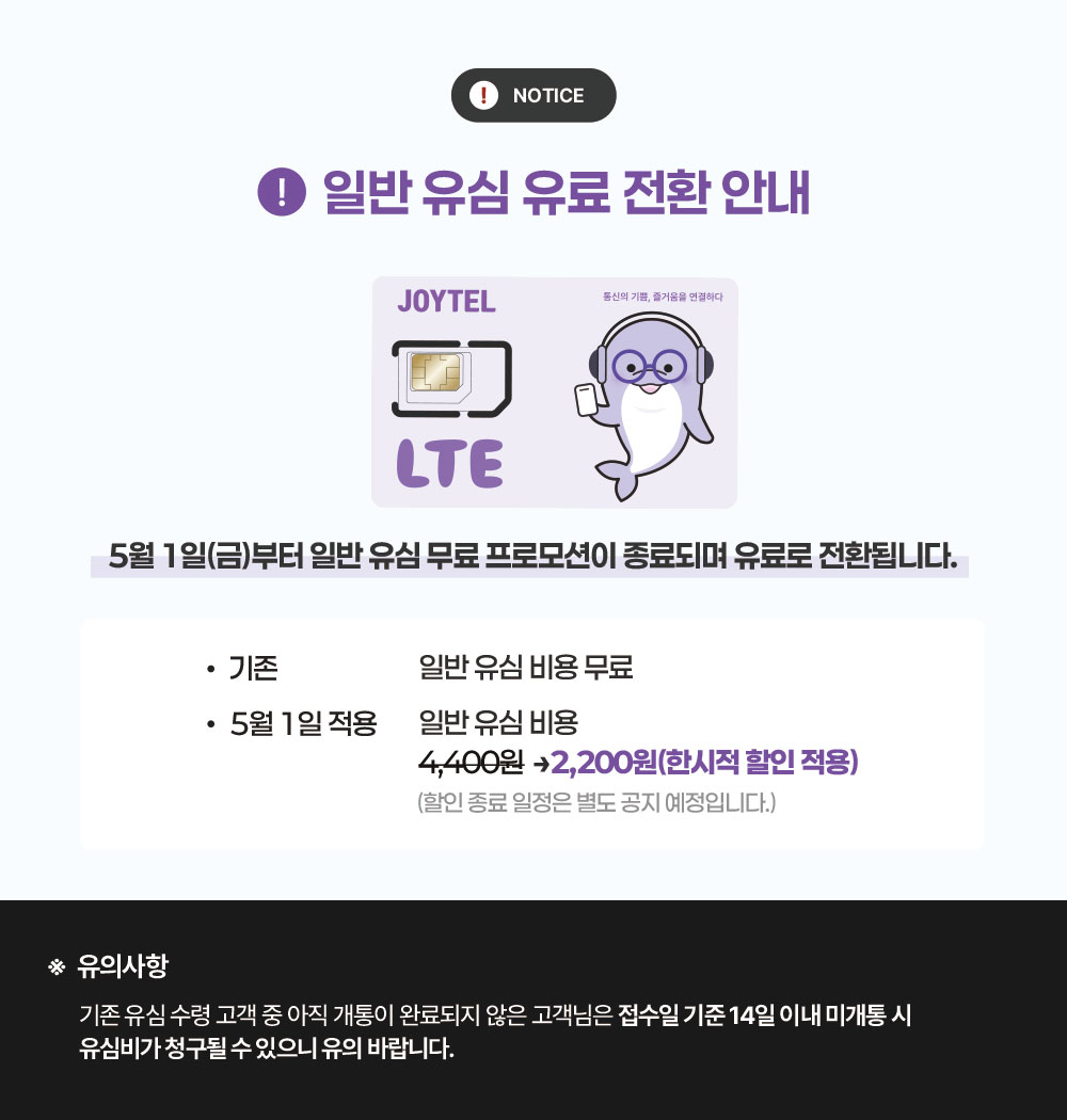 일반 유심 유료 전환 안내