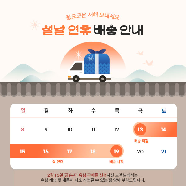 설날 연휴 배송 안내
